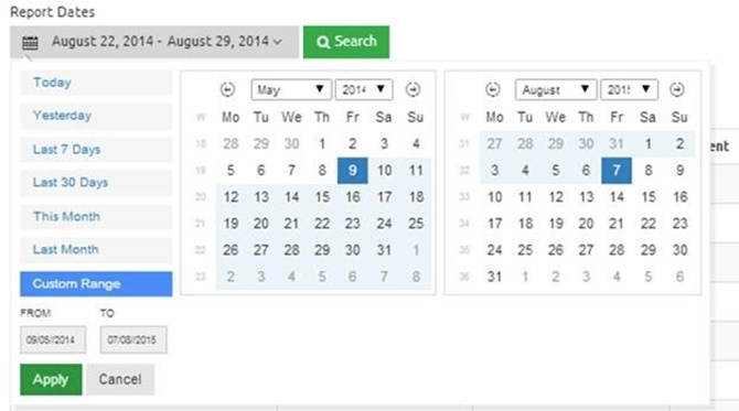 - From the popup box, select the desired report range dates by clicking on the To and From dates.