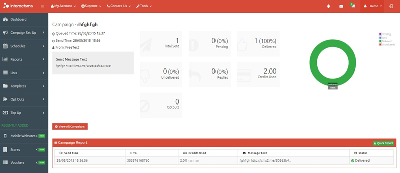 This report details all the campaigns that have been sent from your InteractSMS account.