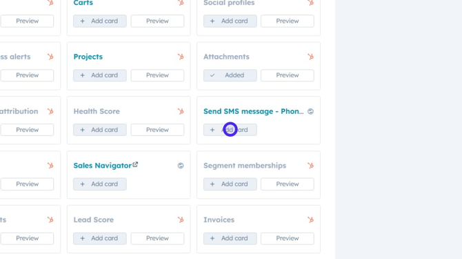 Scroll through the card options in the library and click Add card under the section where you want the new card (in this case, below the Phonovation SMS section on the left panel).