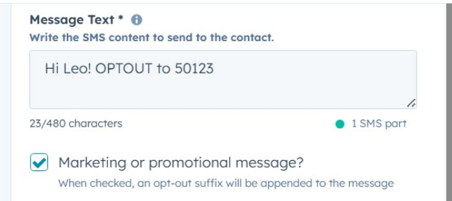 6. If needed, mark the message as marketing/promotional so opt-out text is included. (required for all marketing and promotional messages).