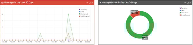 - Graph: This graph displays how many messages were Sent, Pending, Delivered, and Undelivered in the last 30 days.